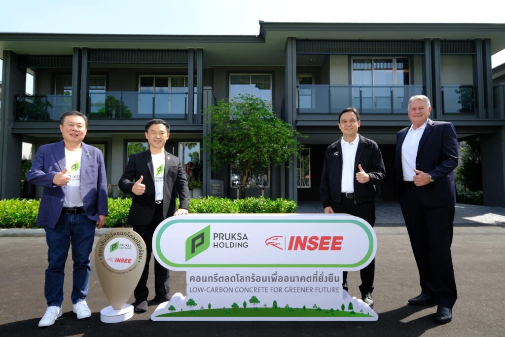 “บ้านภายใต้แบรนด์พฤกษาเป็นบ้านคาร์บอนต่ำ นอกจากการก่อสร้างโครงการโดยเลือกใช้ปูนรักษ์โลกจากปูนซีเมนต์อินทรีเพชร Easy Flow พฤกษายังเป็น ผู้พัฒนาอสังหาริมทรัพย์รายแรกที่ใช้คาร์บอนเคียว ซึ่งเป็นเทคโนโลยีสีเขียวในการผลิตแผ่นพรีคาสท์คาร์บอนต่ำในการสร้างบ้าน โดยนำคาร์บอนไดออกไซด์ที่เป็นตัวการสำคัญในการทำลายชั้นบรรยากาศมาฉีดกักเก็บเข้าไปในขั้นตอนการผสมคอนกรีต จึงช่วยลดการปล่อยคาร์บอนและก๊าซเรือนกระจกอื่น ๆ ขณะเดียวกันยังสามารถลดปริมาณการใช้ซีเมนต์ลงร้อยละ 5 แต่ยังคงประสิทธิภาพความแข็งแกร่งได้ตามมาตรฐาน และเมื่อเร็ว ๆ นี้ องค์การบริหารจัดการก๊าซเรือนกระจก ได้ประกาศรับรองคาร์บอนฟุตพริ้นท์ให้กับ อินโน พรีคาสท์ โดยได้รับฉลากลดคาร์บอนฟุตพริ้นท์ Carbon Footprint Reduction (CFR) หรือฉลากลดโลกร้อน ซึ่งถือเป็นพรีคาสท์รายแรก รายเดียว ของอุตสาหกรรมในประเทศไทยที่ได้การรับรอง อีกทั้งยังมีวัสดุก่อสร้างอื่น ๆ ด้วยเช่นกันที่ได้รับฉลากคาร์บอนฟุตพริ้นท์ของผลิตภัณฑ์ Carbon Footprint of Product (CFP)